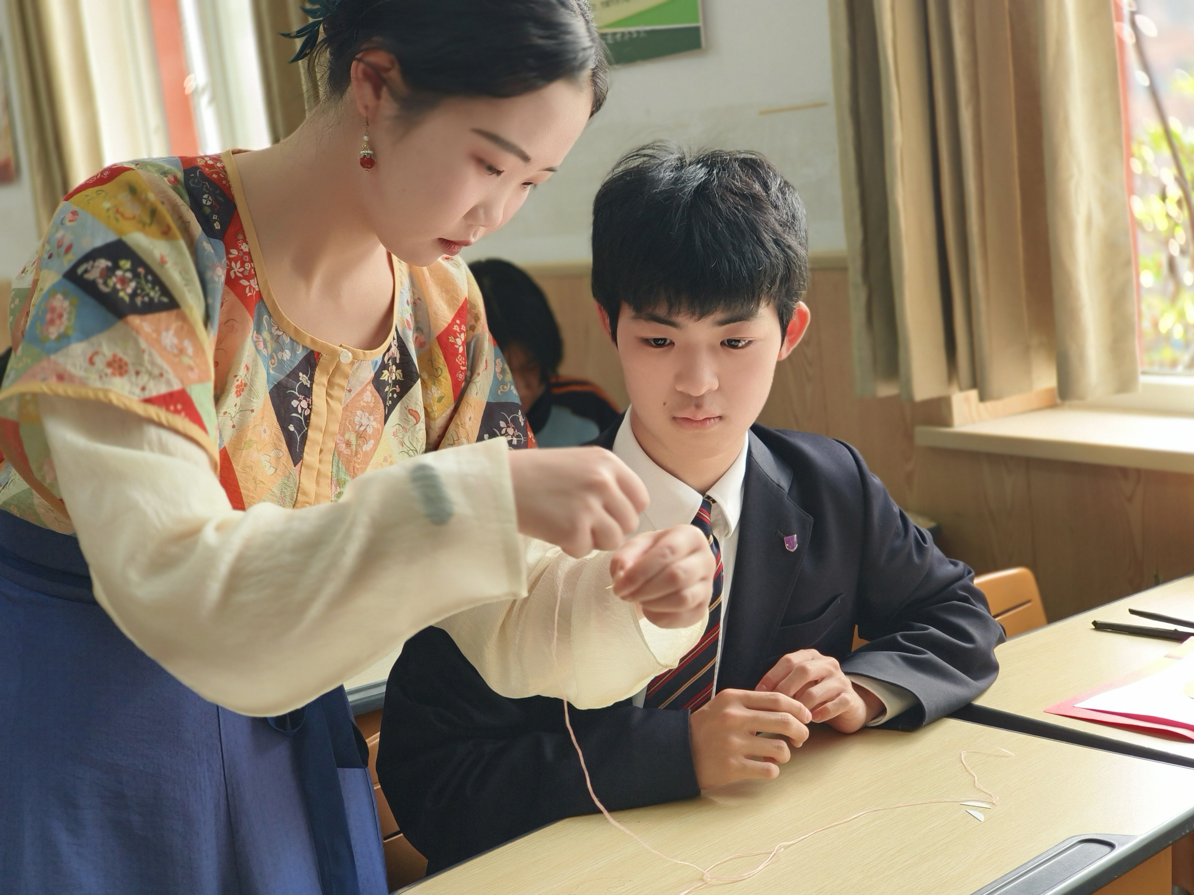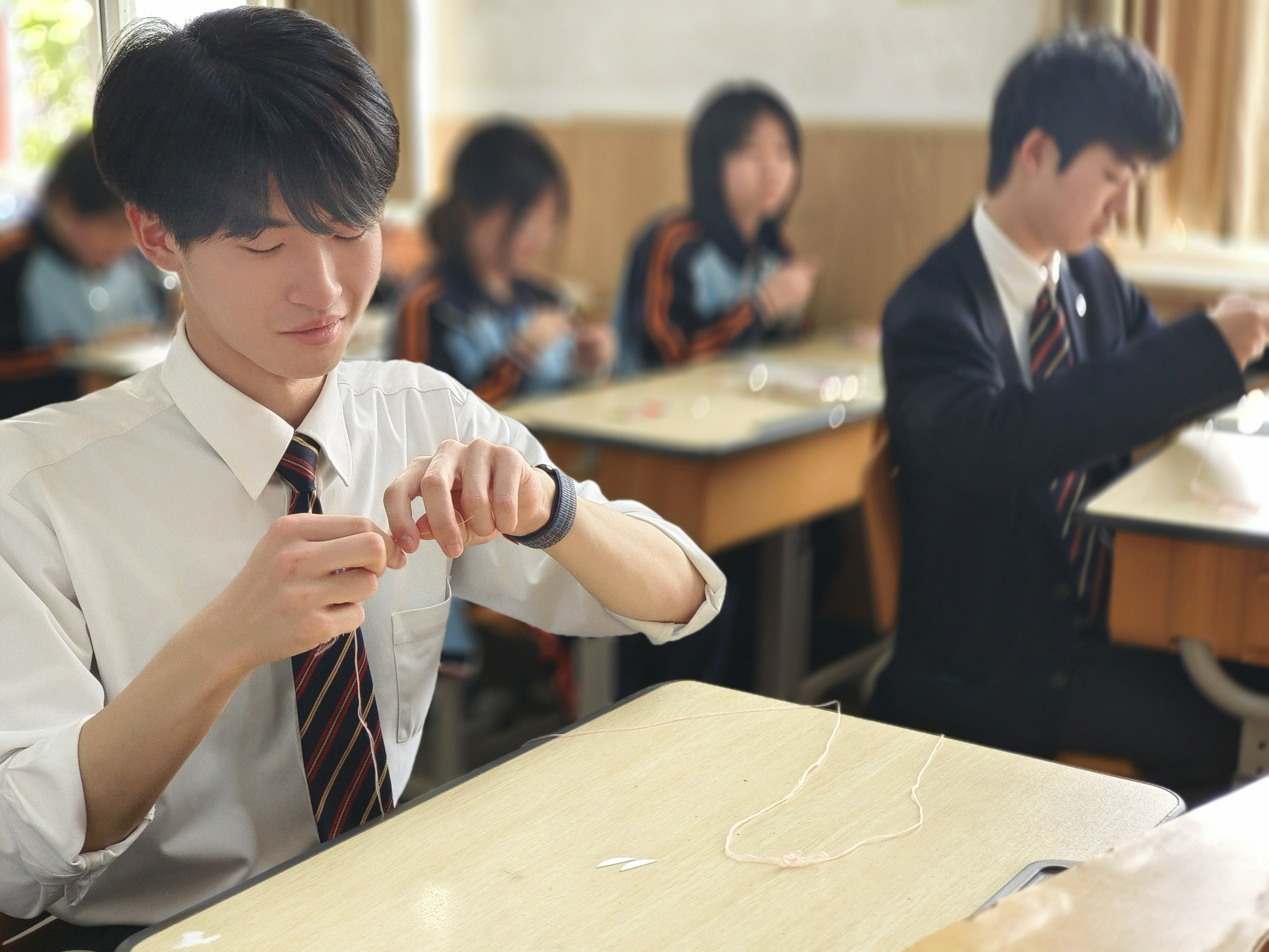 During the in-depth discussion between Chinese and Japanese school leaders, Japanese students came to our school’s hairpin club class to personally experience the charm of traditional Chinese crafts.